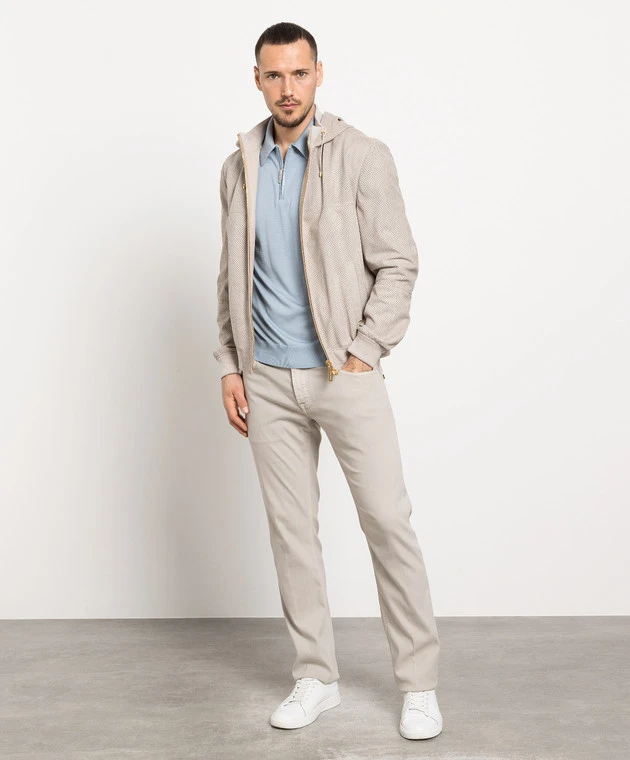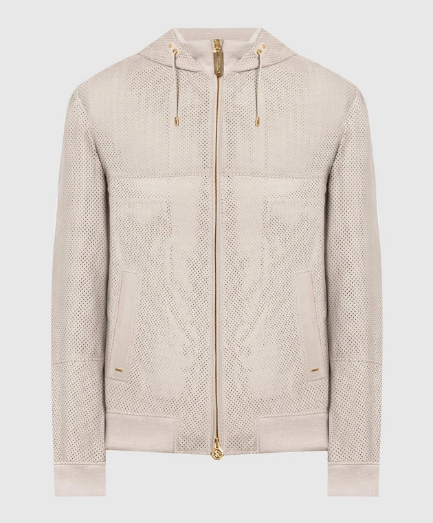 Beige Leather Jacket With Perforation