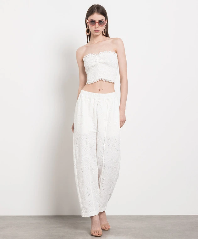 Lya White Pants With Broderie Embroidery