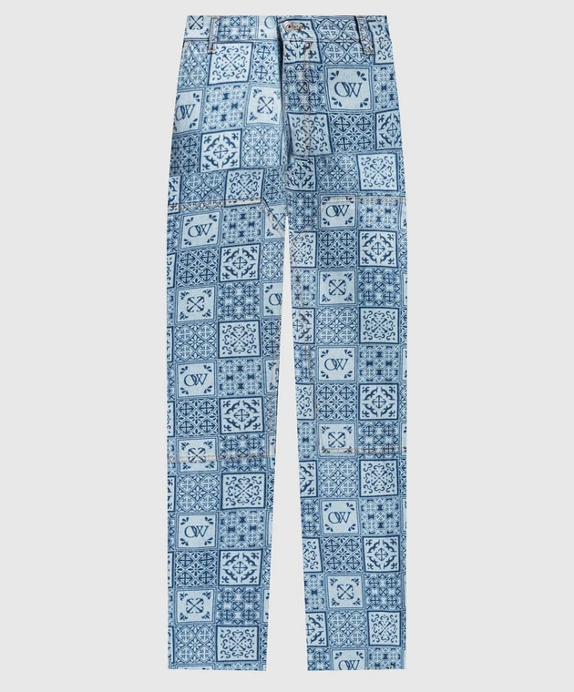 Off-White Blue Flared Jeans In Maiolica Print