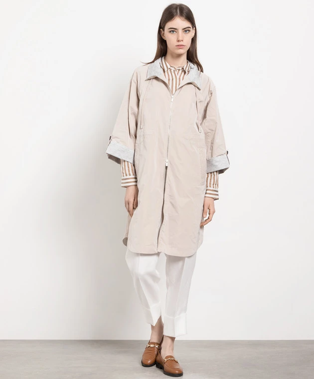 Peserico Beige Raincoat With Monil Chain