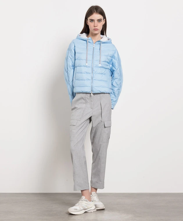 Peserico Blue Down Jacket With Monil Chain