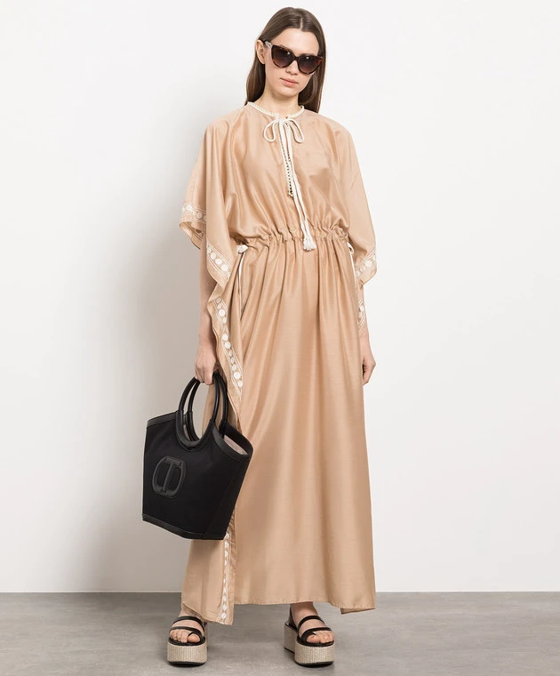 TWINSET Brown Maxi Dress With Embroidery